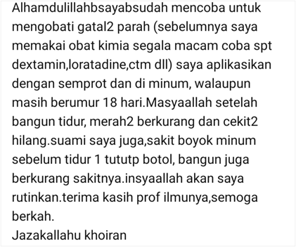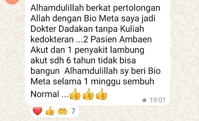 Untuk menyembuhkan penyakit dalam spektrum yang luas, salah satunya penyakit degeratif akibat kurang sempurnanya sistem metabolisme antara lain Jantung, Diabetes, Kolesterol, Trigliserit, Ginjal, liver, dll.